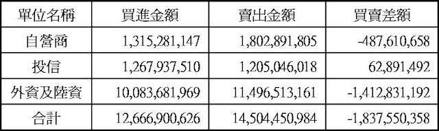 現貨部份三大法人合計賣超18.38億