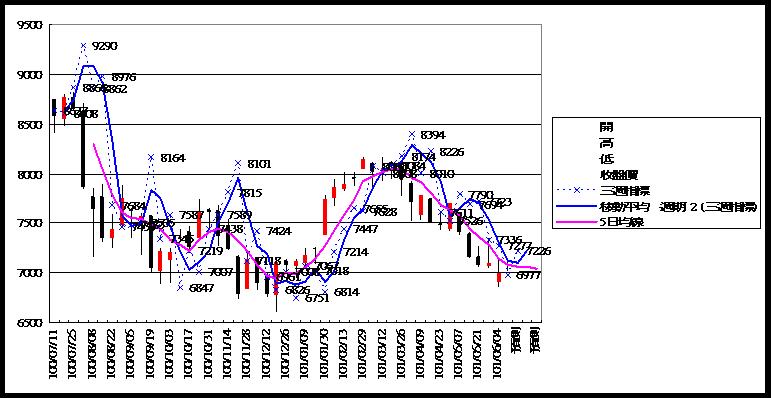 高低點震盪預測+/-誤差大於75點或與前日變化大表示進入盤整或新趨勢