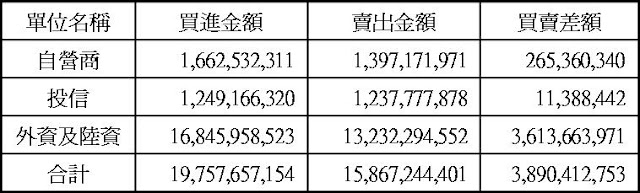現貨部份三大法人合計買超38.90億