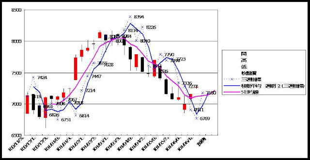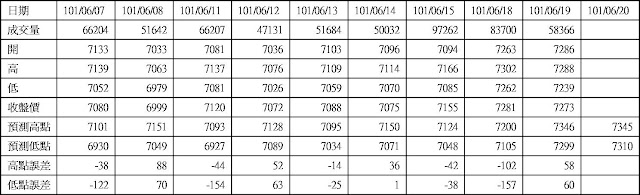 高低點震盪預測+/-誤差大於75點或與前日變化大表示進入盤整或新趨勢