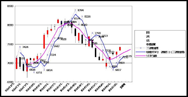 高低點震盪預測+/-誤差大於75點或與前日變化大表示進入盤整或新趨勢
