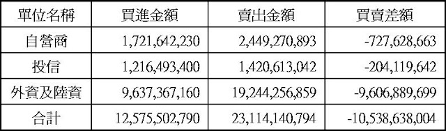 現貨部份三大法人合計賣超105.4億