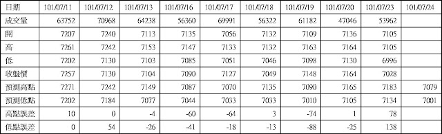 高低點振盪預測+/-誤差大於75點或與前日變化大表示進入盤整或新趨勢