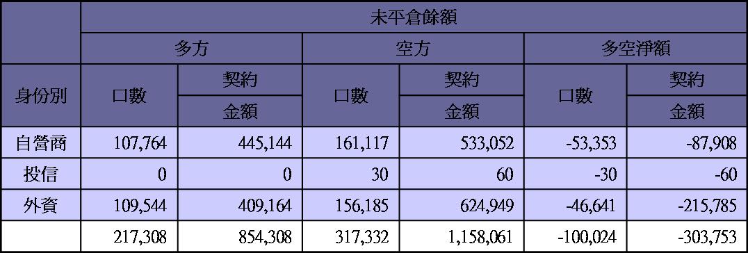 台股期貨未平倉20120724