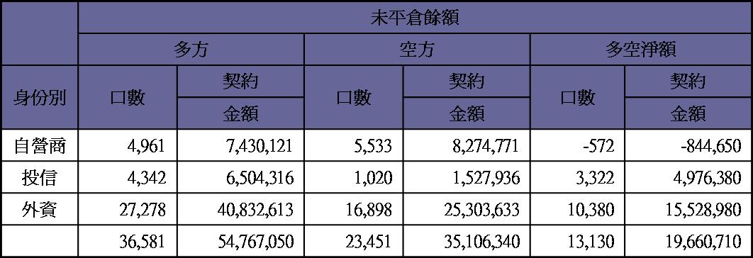 期貨未平倉量多單水位急降至10000多