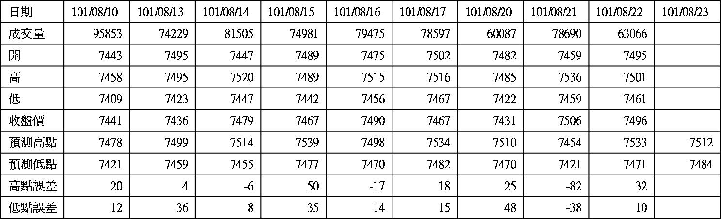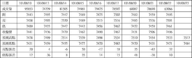 高低點振盪預測+/-誤差大於75點或與前日變化大表示進入盤整或新趨勢