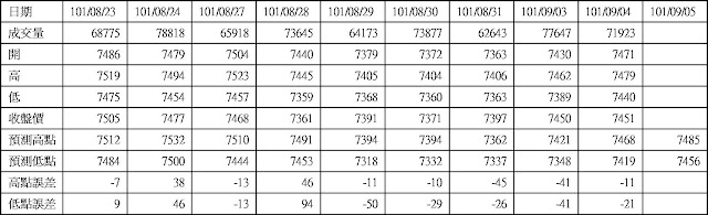 高低點振盪預測+/-誤差大於75點或與前日變化大表示進入盤整或新趨勢