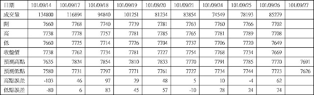 高低點振盪預測+/-誤差大於75點或與前日變化大表示進入盤整或新趨勢