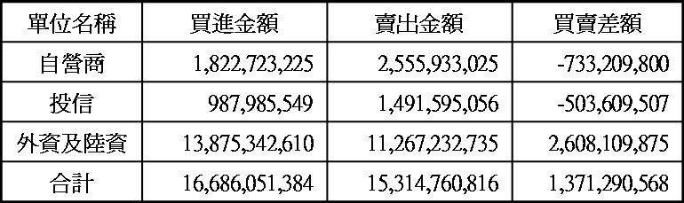 三大法人現貨買賣超