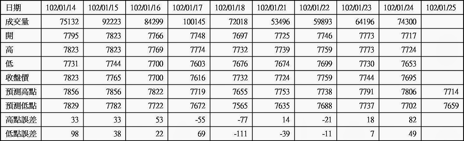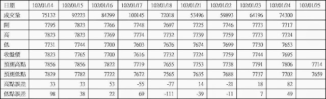 高低點振盪預測+/-誤差大於75點或與前日變化大表示進入盤整或新趨勢
