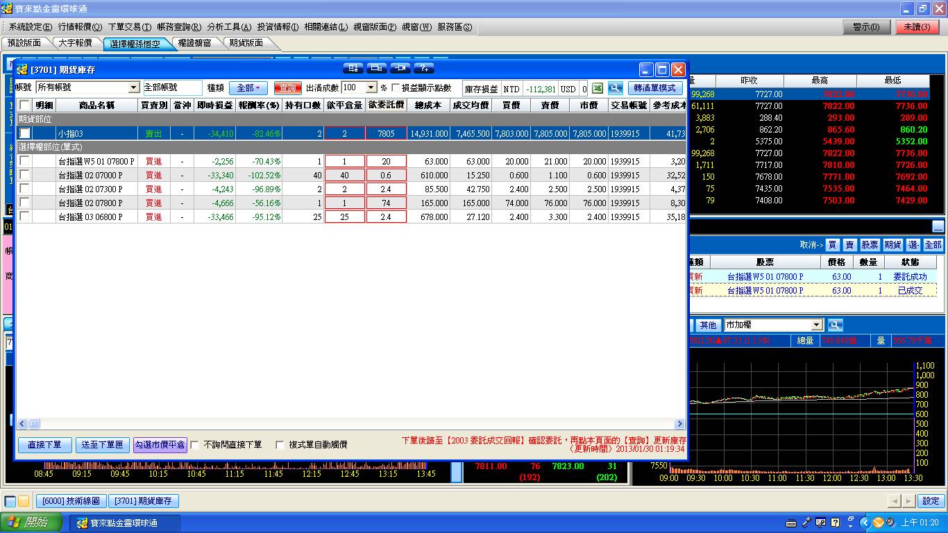 盤中買進週選擇權7800賣權1口
