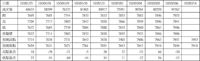 高低點振盪預測+/-誤差大於75點或與前日變化大表示進入盤整或新趨勢