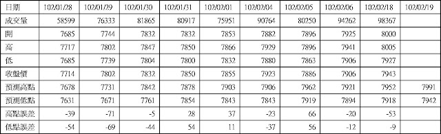 高低點振盪預測+/-誤差大於75點或與前日變化大表示進入盤整或新趨勢