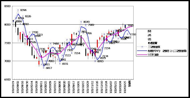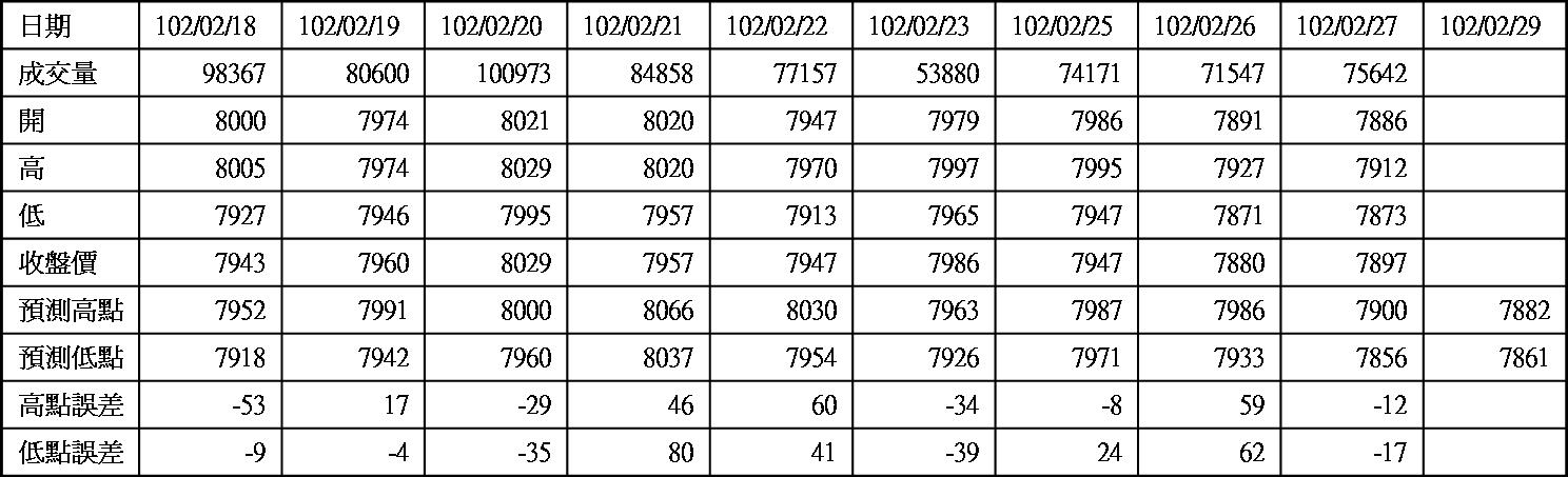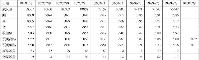 高低點振盪預測+/-誤差大於75點或與前日變化大表示進入盤整或新趨勢