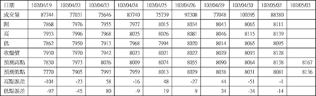 高低點振盪預測+/-誤差大於75點或與前日變化大表示進入盤整或新趨勢
