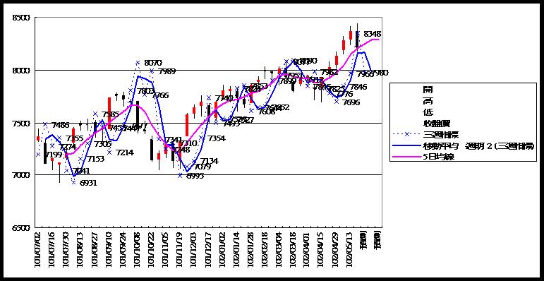 高低點振盪預測+/-誤差大於75點或與前日變化大表示進入盤整或新趨勢