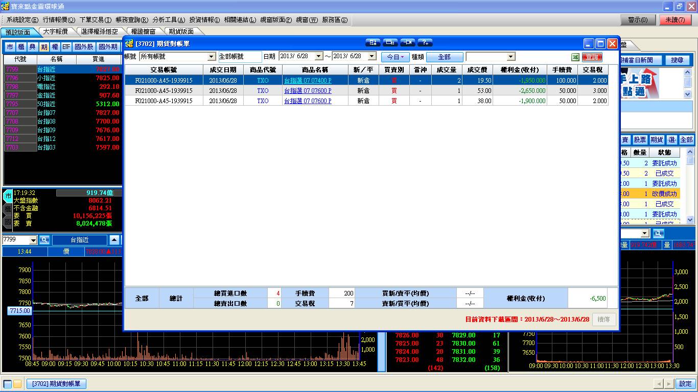 盤中買進7月份7400賣權2口及7月份7600賣權2口