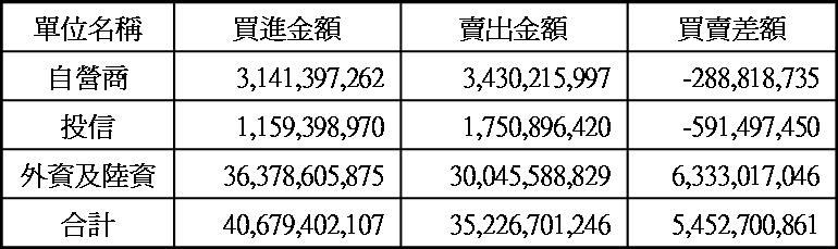 三大法人現貨買賣超