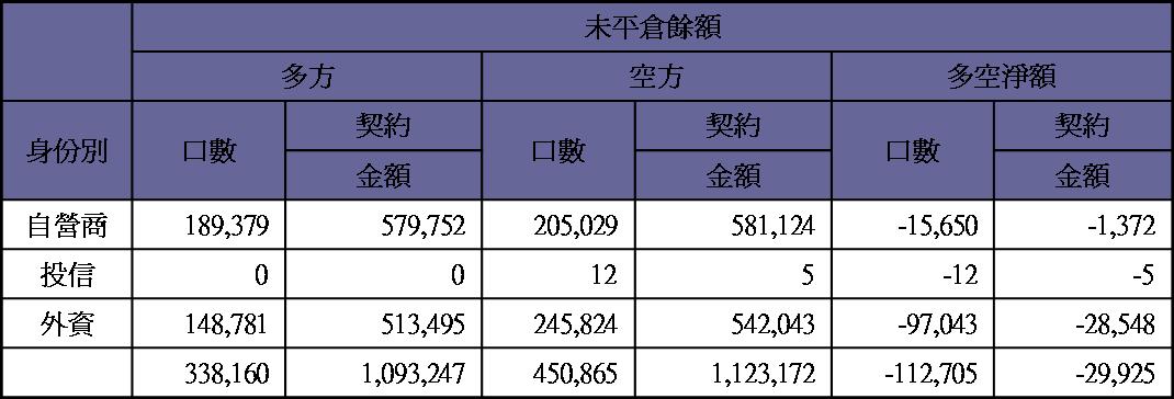 期貨未平倉量空單水位轉為多單約1300多口