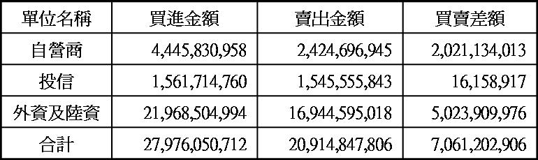 三大法人現貨買賣超