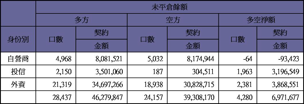 期貨未平倉量空單水位轉為多單約2300多口