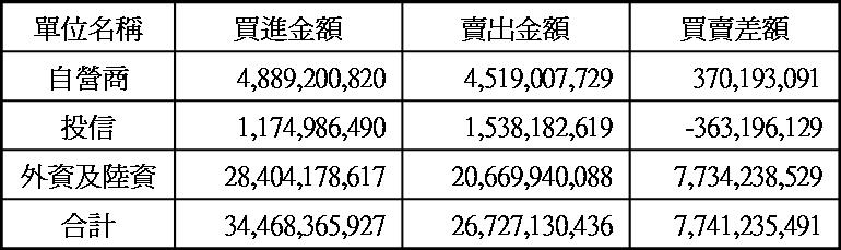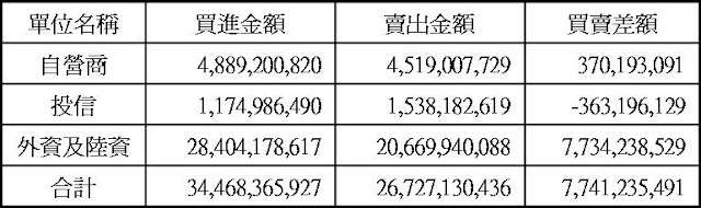 三大法人現貨買賣超