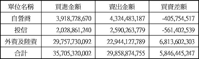 三大法人現貨買賣超