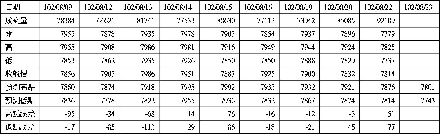 高低點振盪預測+/-誤差大於75點或與前日變化大表示進入盤整或新趨勢
