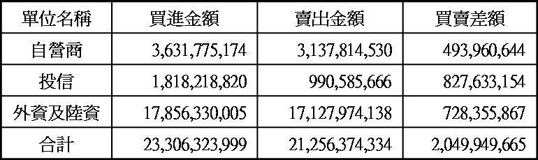 三大法人現貨買賣超