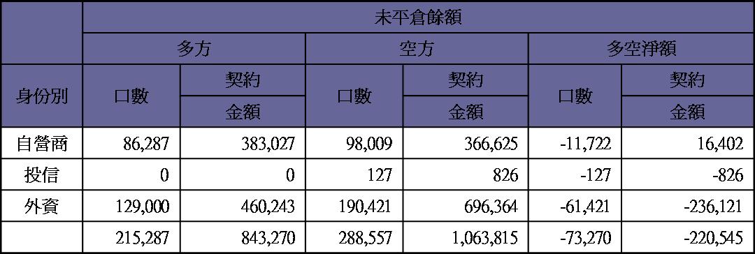 期貨未平倉量空單水位減為約8400多口