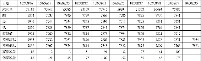 高低點振盪預測+/-誤差大於75點或與前日變化大表示進入盤整或新趨勢