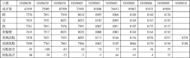 高低點振盪預測+/-誤差大於75點或與前日變化大表示進入盤整或新趨勢