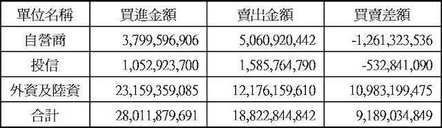 三大法人現貨買賣超