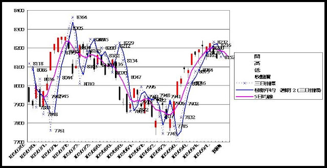 高低點振盪預測+/-誤差大於75點或與前日變化大表示進入盤整或新趨勢
