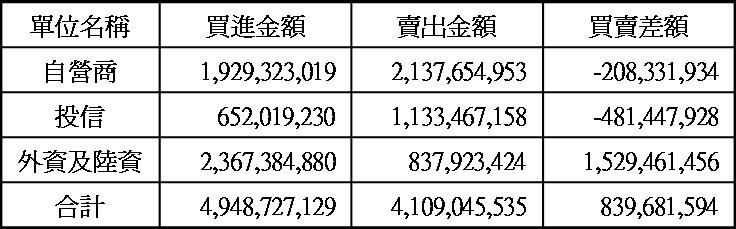 三大法人現貨買賣超
