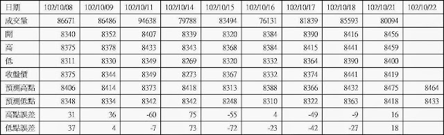 高低點振盪預測+/-誤差大於75點或與前日變化大表示進入盤整或新趨勢