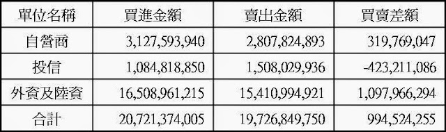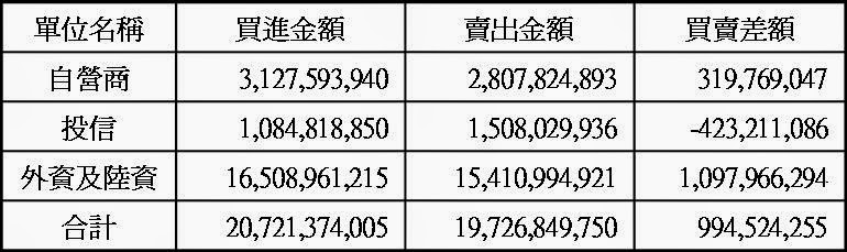 三大法人現貨買賣超