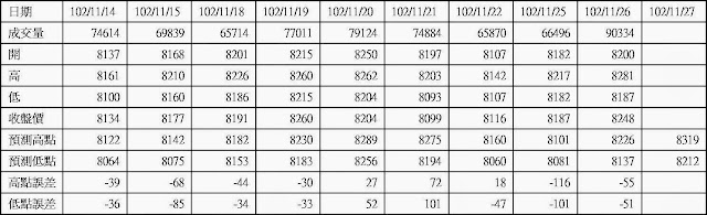 高低點振盪預測+/-誤差大於75點或與前日變化大表示進入盤整或新趨勢