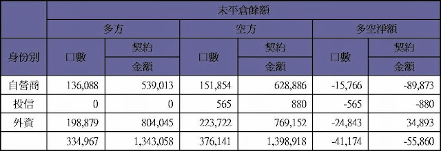 期貨未平倉量空單水位減為約2000多口