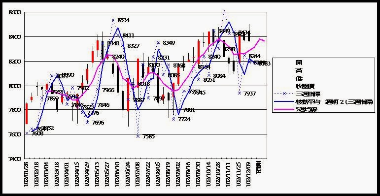 高低點振盪預測+/-誤差大於75點或與前日變化大表示進入盤整或新趨勢