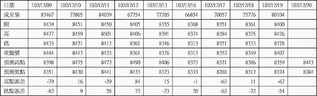 高低點振盪預測+/-誤差大於75點或與前日變化大表示進入盤整或新趨勢