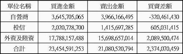 三大法人現貨買賣超
