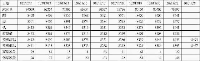 高低點振盪預測+/-誤差大於75點或與前日變化大表示進入盤整或新趨勢