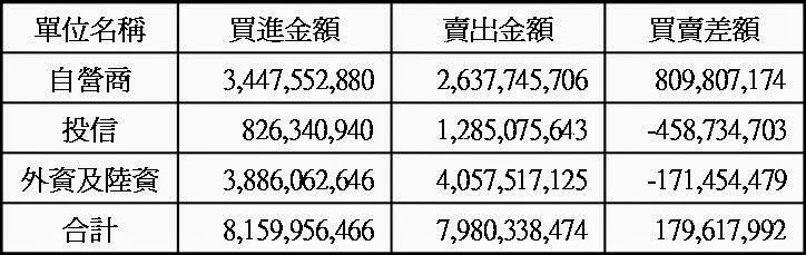 三大法人現貨買賣超