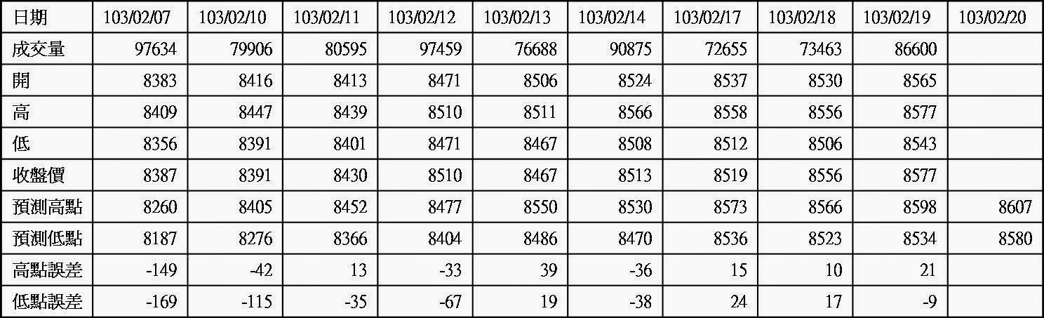 高低點振盪預測+/-誤差大於75點或與前日變化大表示進入盤整或新趨勢