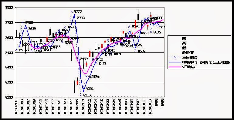 高低點振盪預測+/-誤差大於75點或與前日變化大表示進入盤整或新趨勢