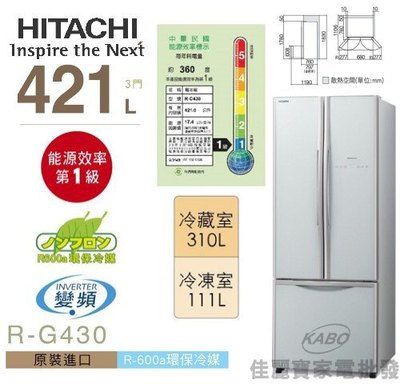 【非買不可】【佳麗寶】請來電確認貨況-(HITACHI日立) 421L三門冰箱【RG430】-預訂折扣優惠