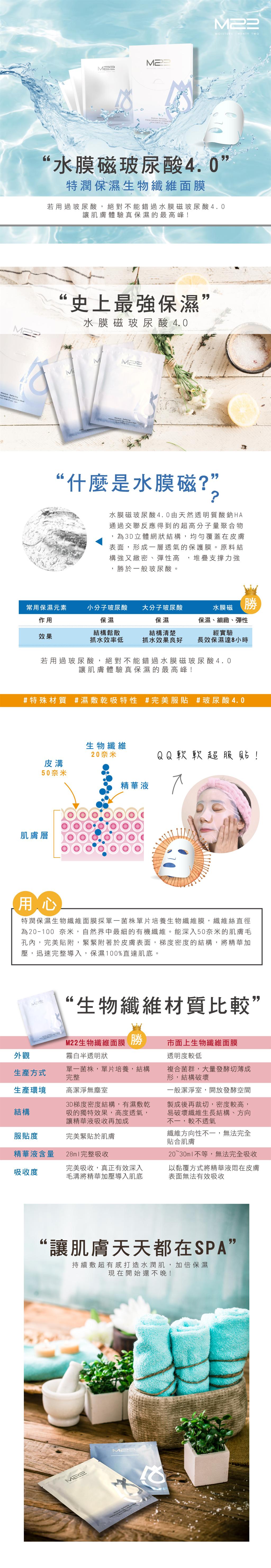 M22台灣製 特潤保濕生物纖維面膜 不可錯過的最新版 玻尿酸4.0 水膜磁
