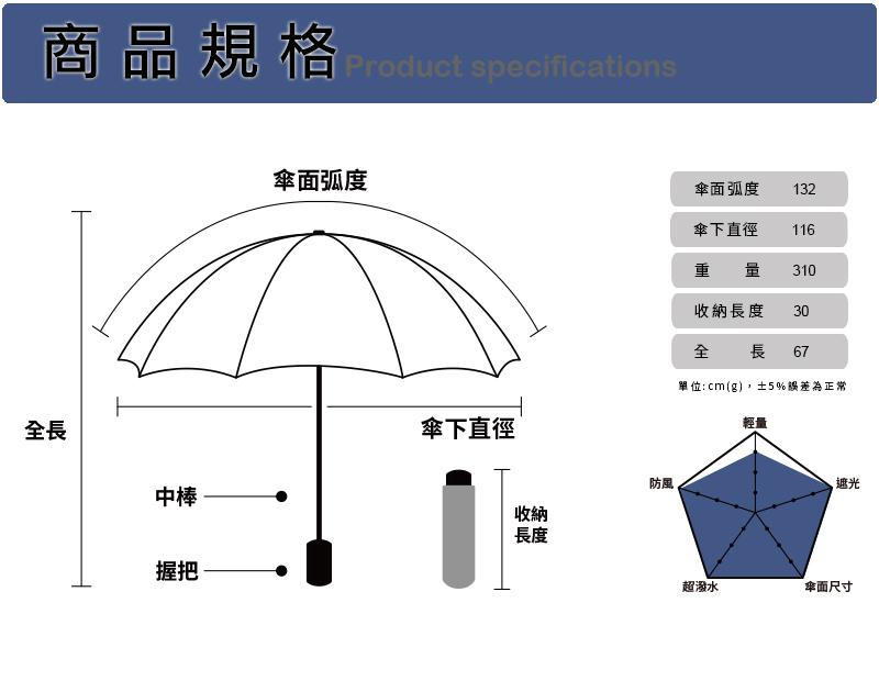 ?● 132cm超大傘面弧度,輕鬆為2-5人擋雨