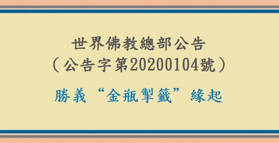 世界佛教總部公告 (公告字第20200104號) 勝義“金瓶掣籤”緣起 ... (詳全文)